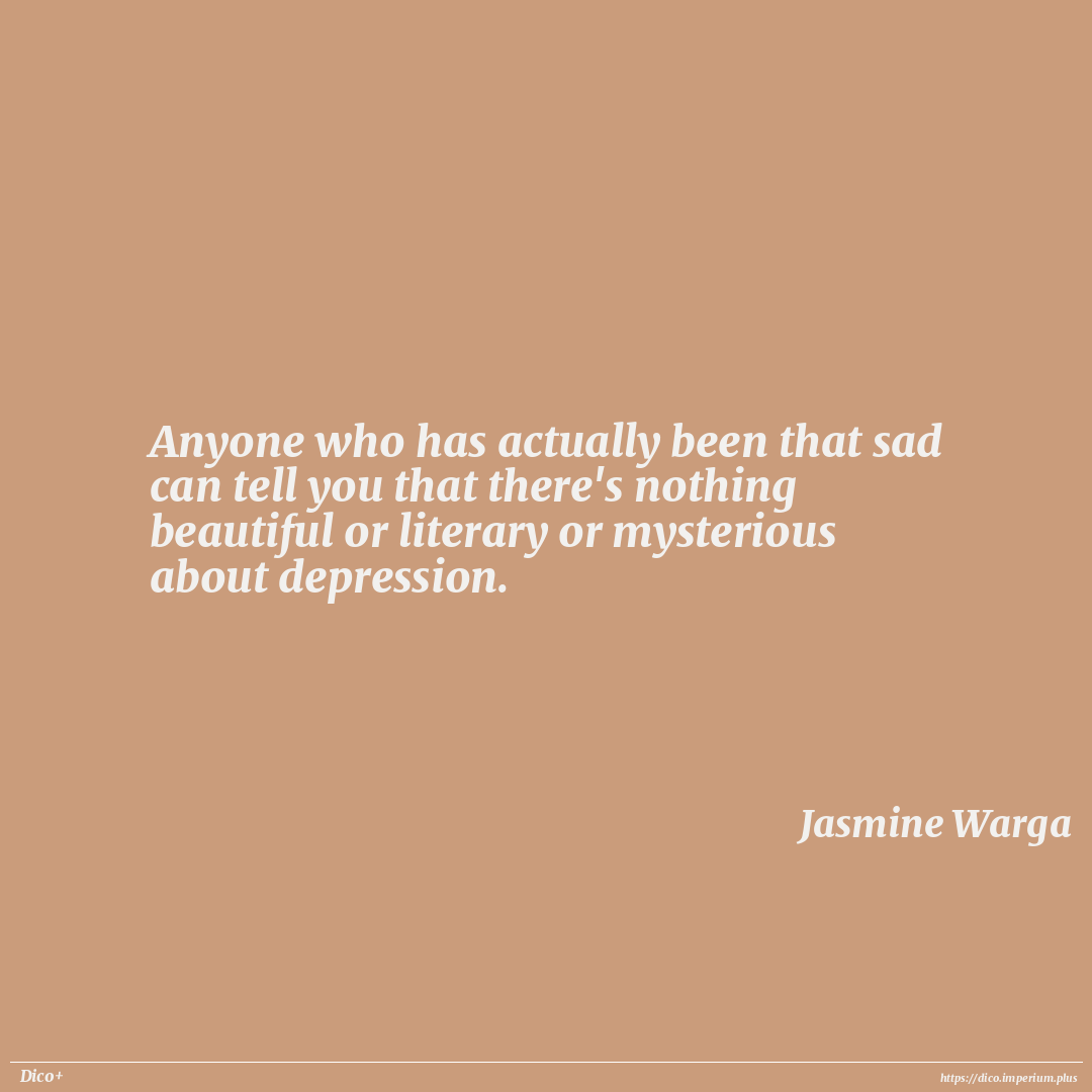 Anyone who has actually been that sad can tell you that there's nothing beautiful or literary or mysterious about depression.