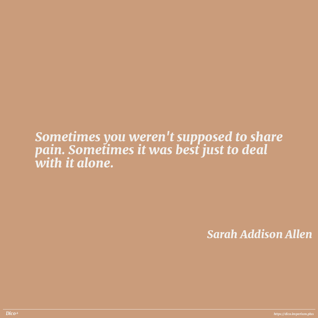 Sometimes you weren't supposed to share pain. Sometimes it was best just to deal with it alone.