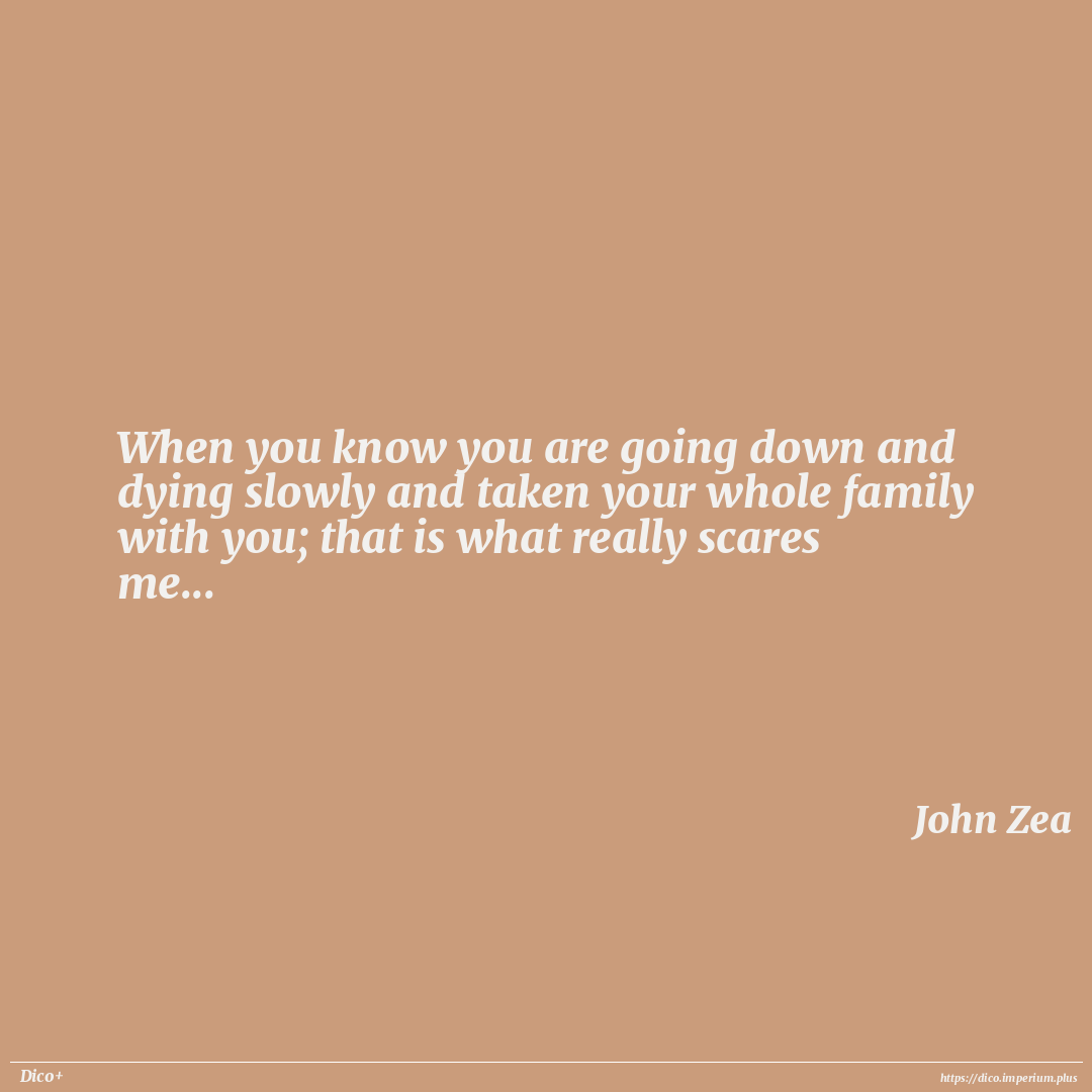 When you know you are going down and dying slowly and taken your whole family with you; that is what really scares me...