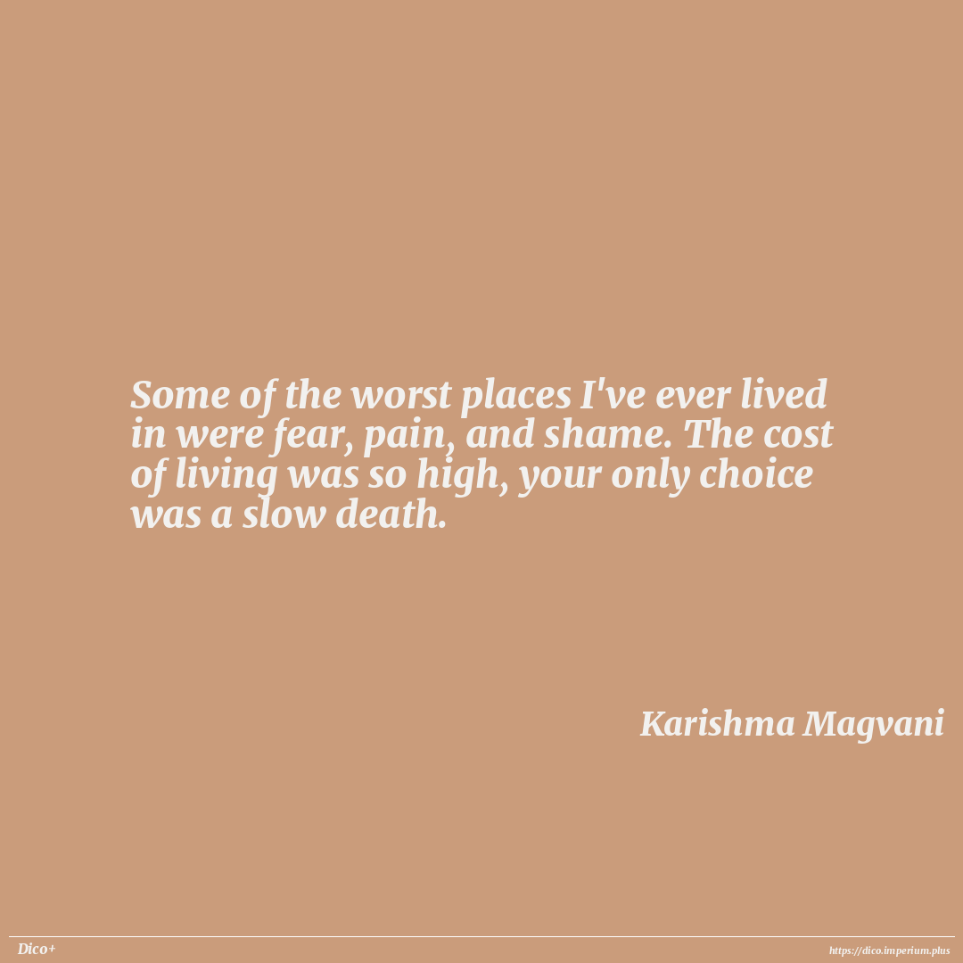 Some of the worst places I've ever lived in were fear, pain, and shame. The cost of living was so high, your only choice was a slow death.