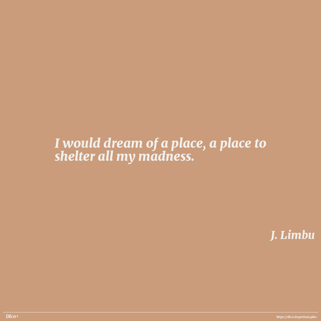 I would dream of a place, a place to shelter all my madness.