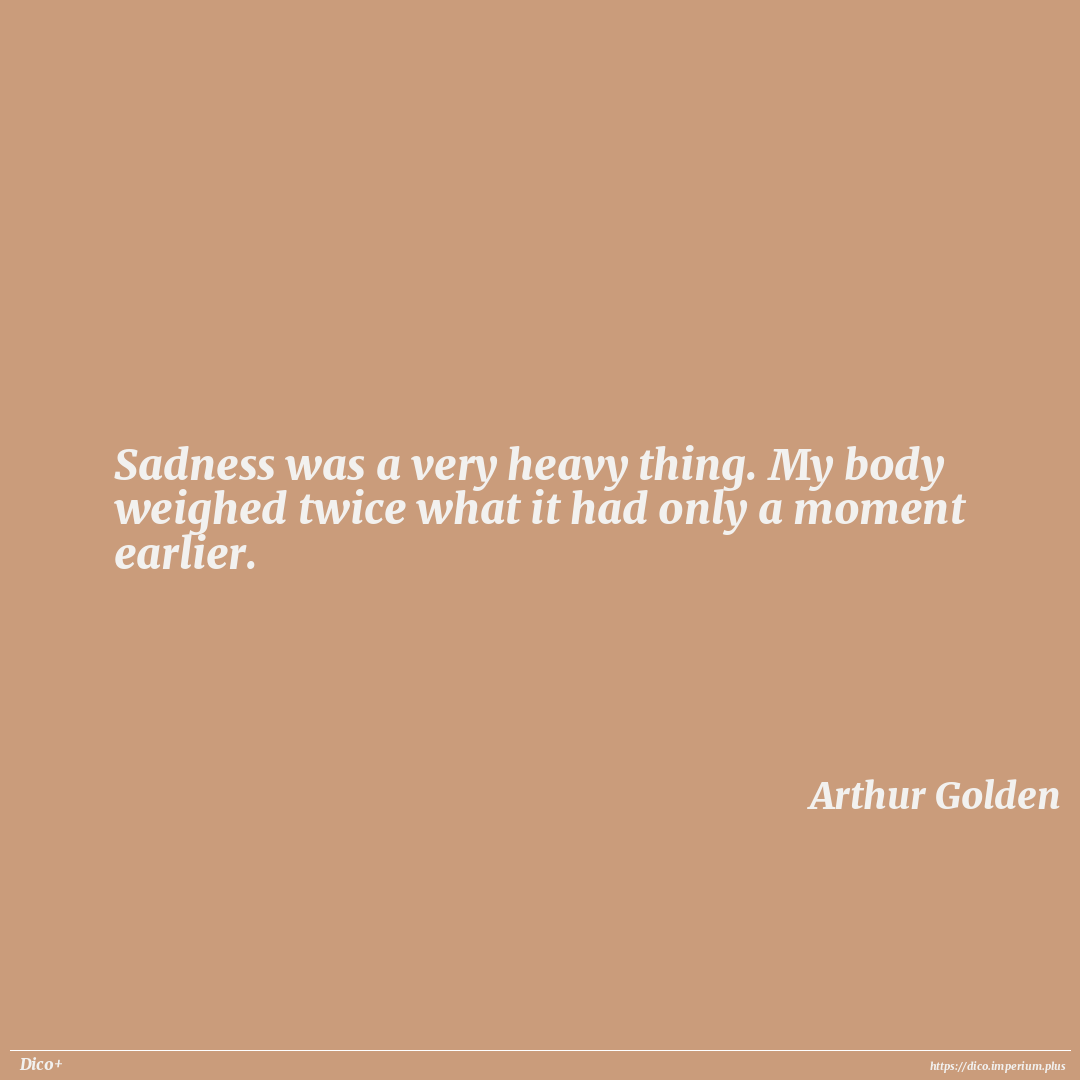 Sadness was a very heavy thing. My body weighed twice what it had only a moment earlier.