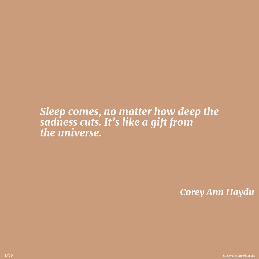 Sleep comes, no matter how deep the sadness cuts. It’s like a gift from the universe.
