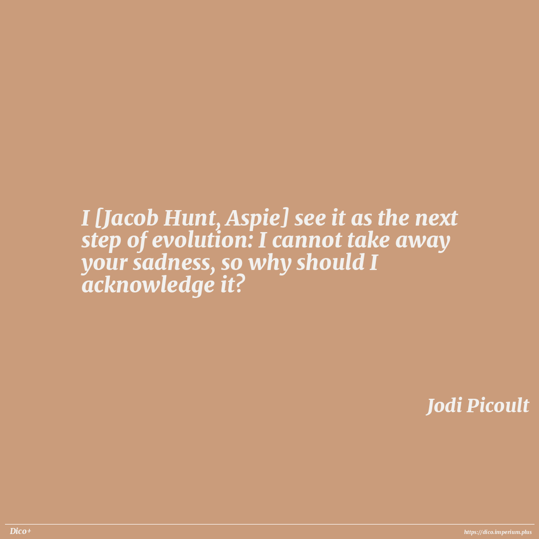 I [Jacob Hunt, Aspie] see it as the next step of evolution: I cannot take away your sadness, so why should I acknowledge it?