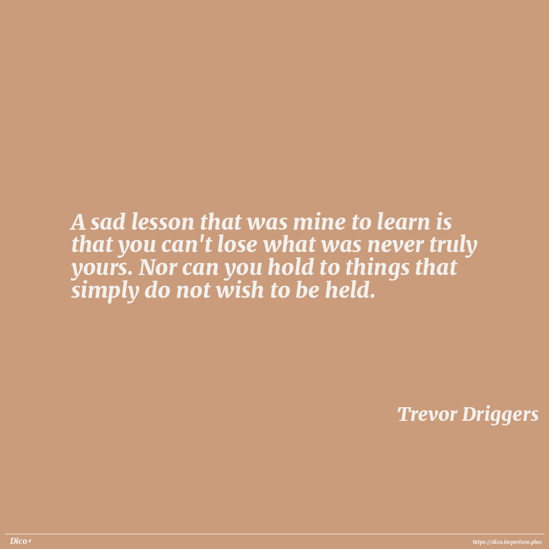 A sad lesson that was mine to learn is that you can't lose what was never truly yours. Nor can you hold to things that simply do not wish to be held.