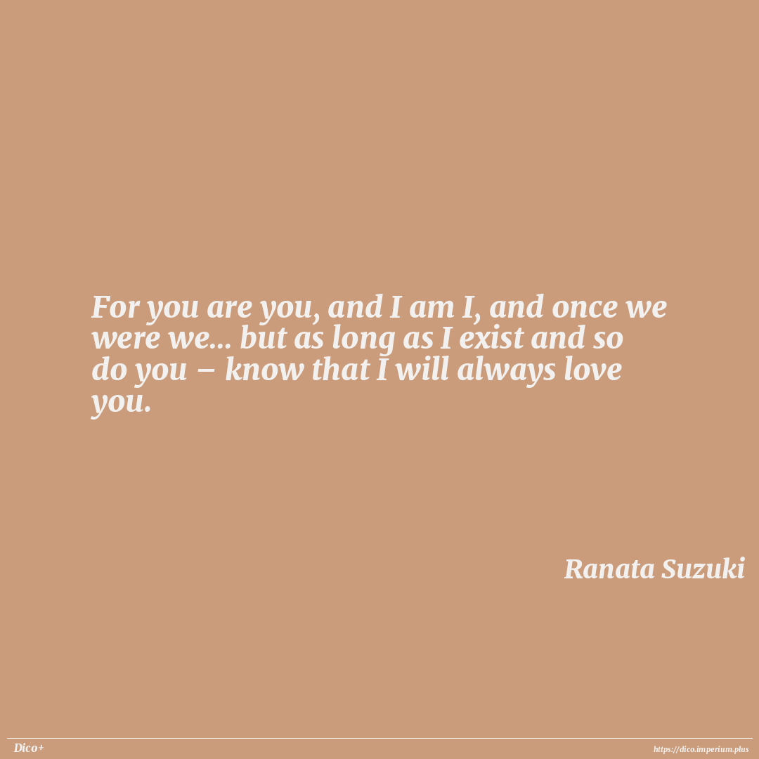 For you are you, and I am I, and once we were we… but as long as I exist and so do you – know that I will always love you.