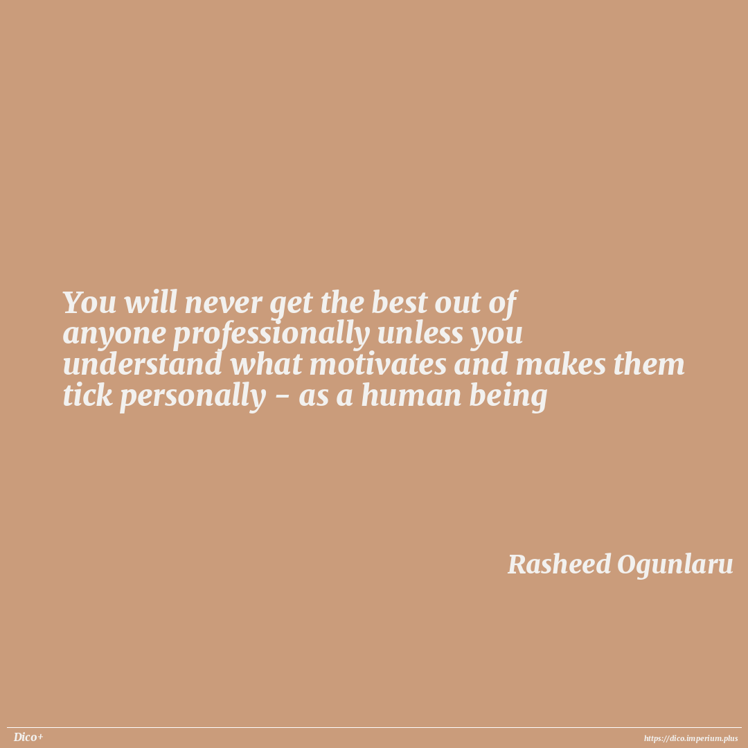 You will never get the best out of anyone professionally unless you understand what motivates and makes them tick personally - as a human being