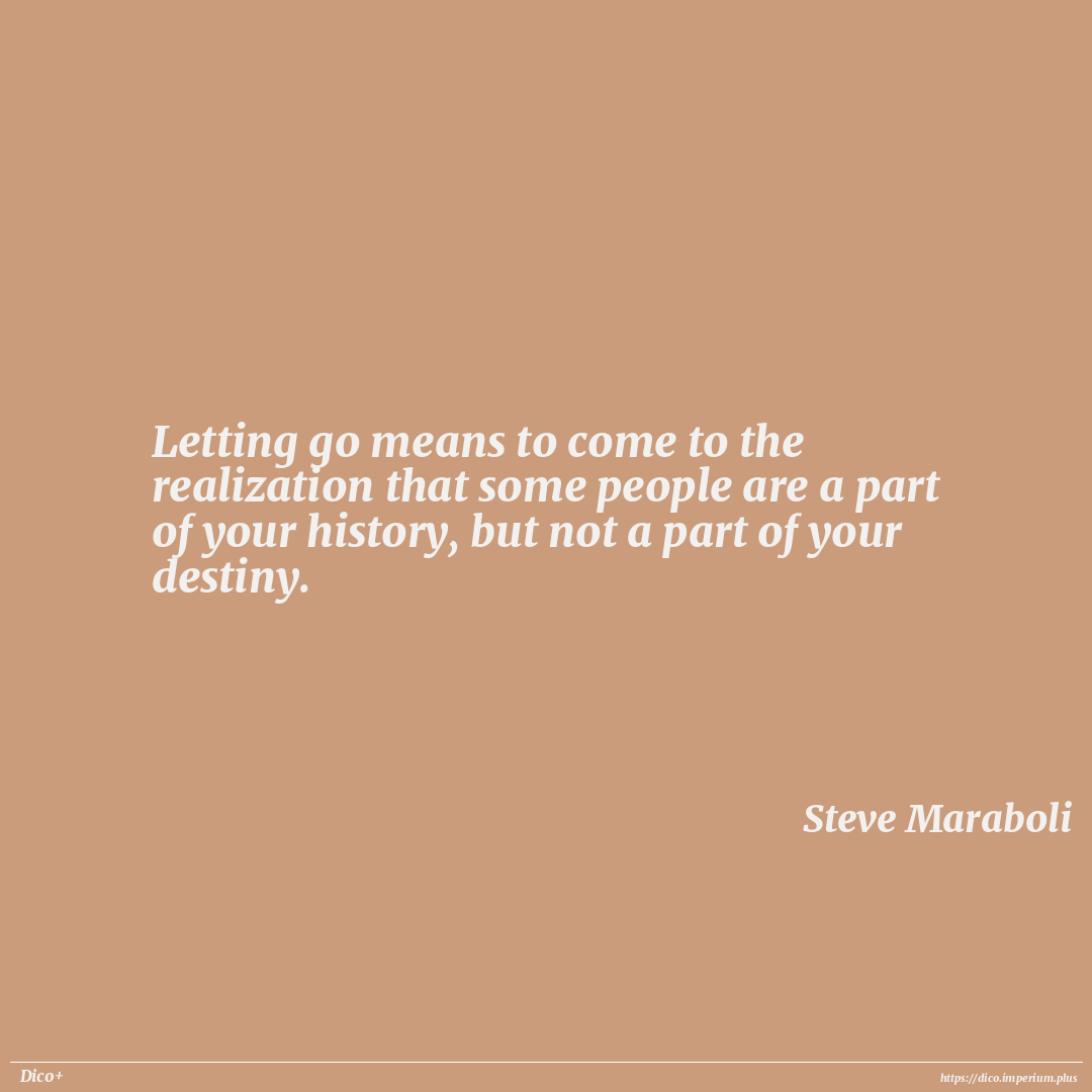 Letting go means to come to the realization that some people are a part of your history, but not a part of your destiny.