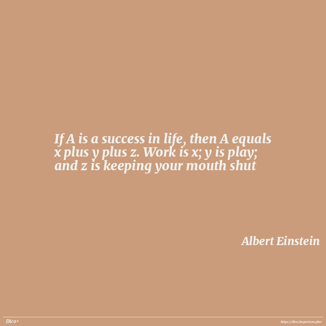 If A is a success in life, then A equals x plus y plus z. Work is x; y is play; and z is keeping your mouth shut