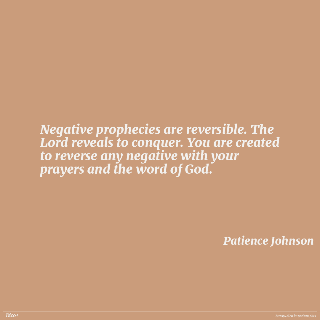 Negative prophecies are reversible. The Lord reveals to conquer. You are created to reverse any negative with your prayers and the word of God.