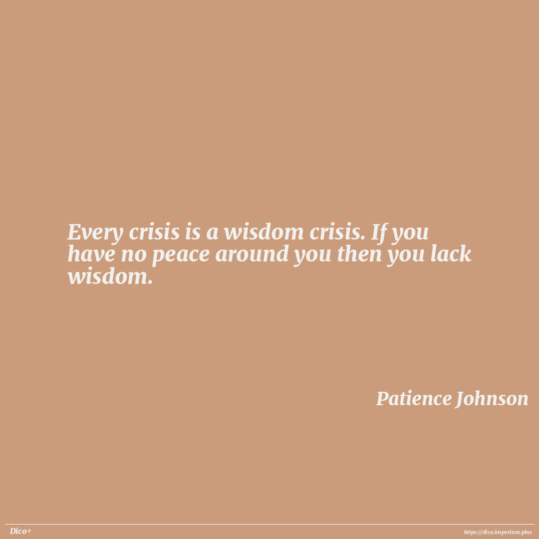 Every crisis is a wisdom crisis. If you have no peace around you then you lack wisdom.