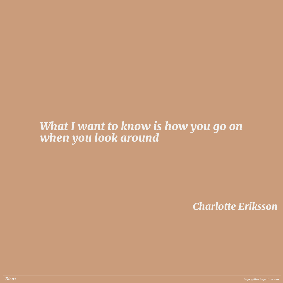 What I want to know is how you go on when you look around