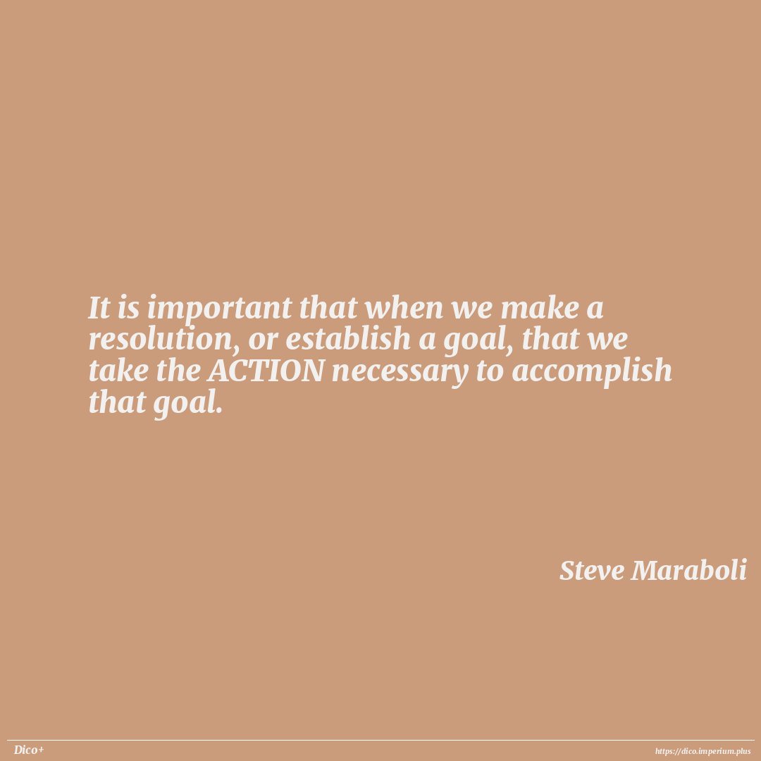 It is important that when we make a resolution, or establish a goal, that we take the ACTION necessary to accomplish that goal.