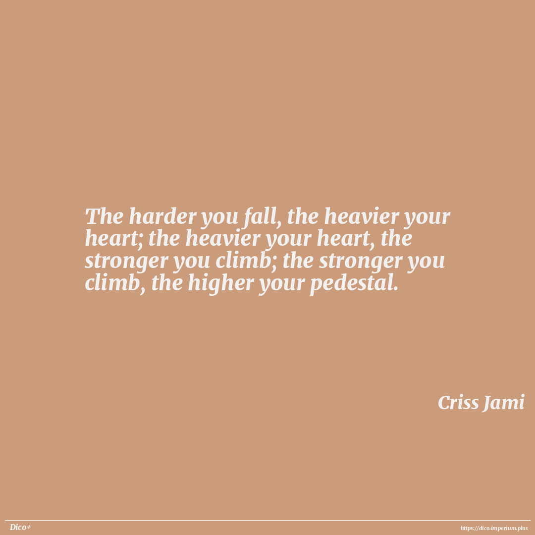 The harder you fall, the heavier your heart; the heavier your heart, the stronger you climb; the stronger you climb, the higher your pedestal.