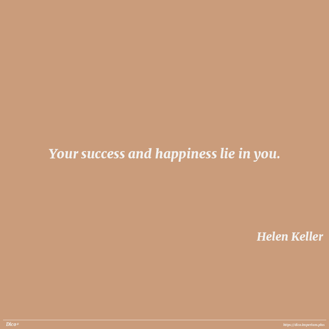 Your success and happiness lies in you. Resolve to keep happy, and your joy and you shall form an invicible host against difficulties.