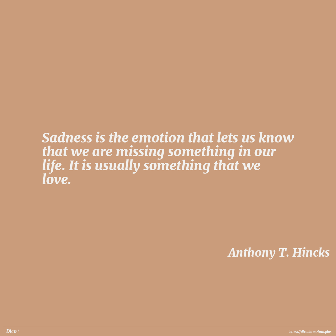 Sadness is the emotion that lets us know that we are missing something in our life. It is usually something that we love.