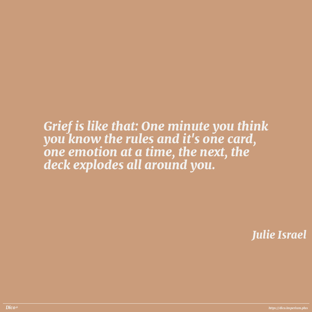 Grief is like that: One minute you think you know the rules and it's one card, one emotion at a time, the next, the deck explodes all around you.