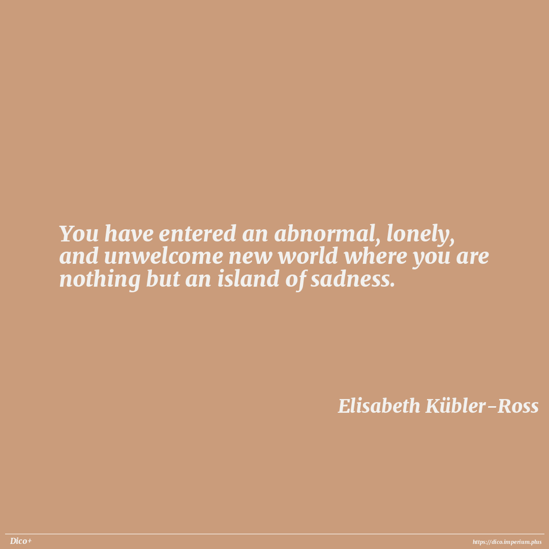 You have entered an abnormal, lonely, and unwelcome new world where you are nothing but an island of sadness.