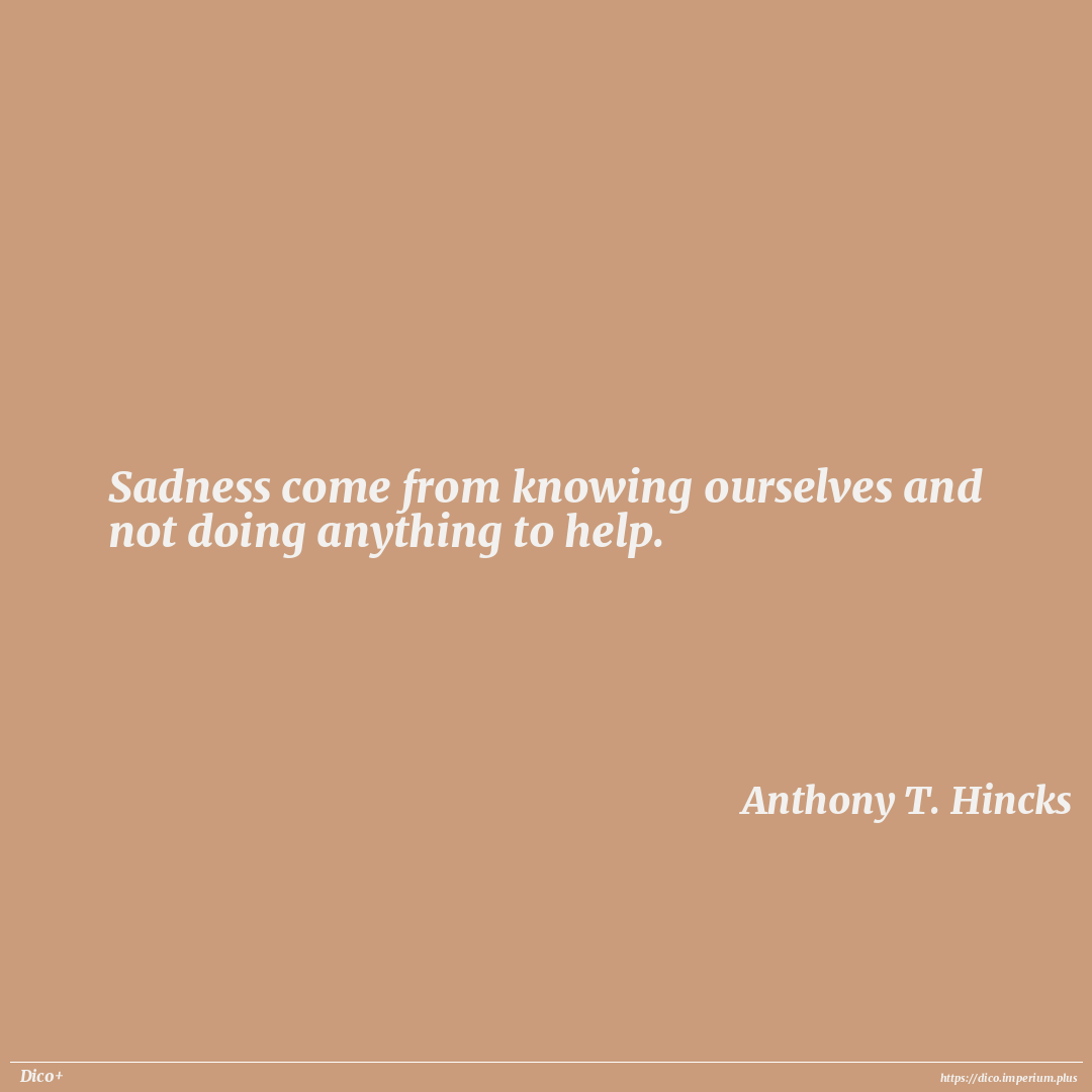 Sadness come from knowing ourselves and not doing anything to help.
