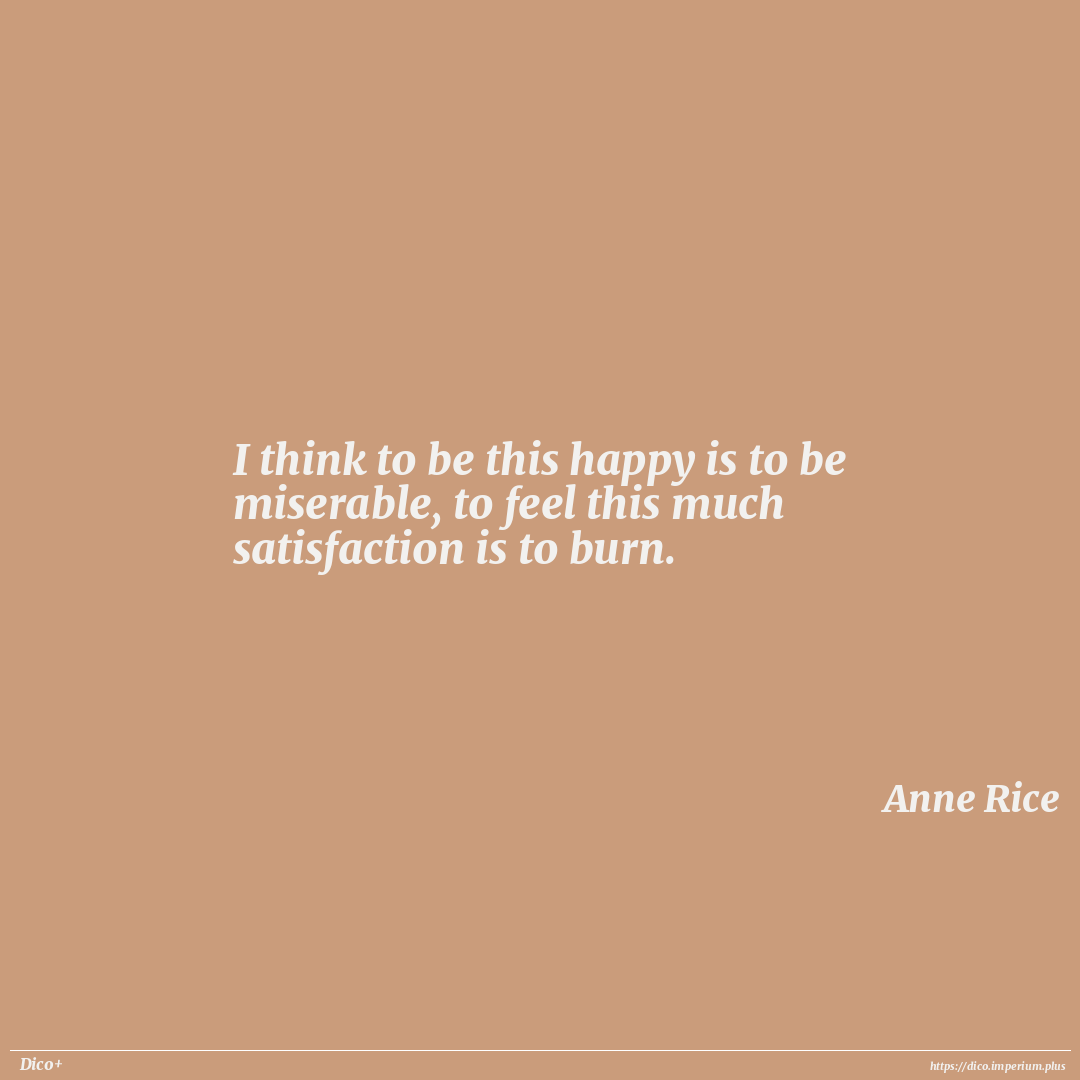 I think to be this happy is to be miserable, to feel this much satisfaction is to burn.