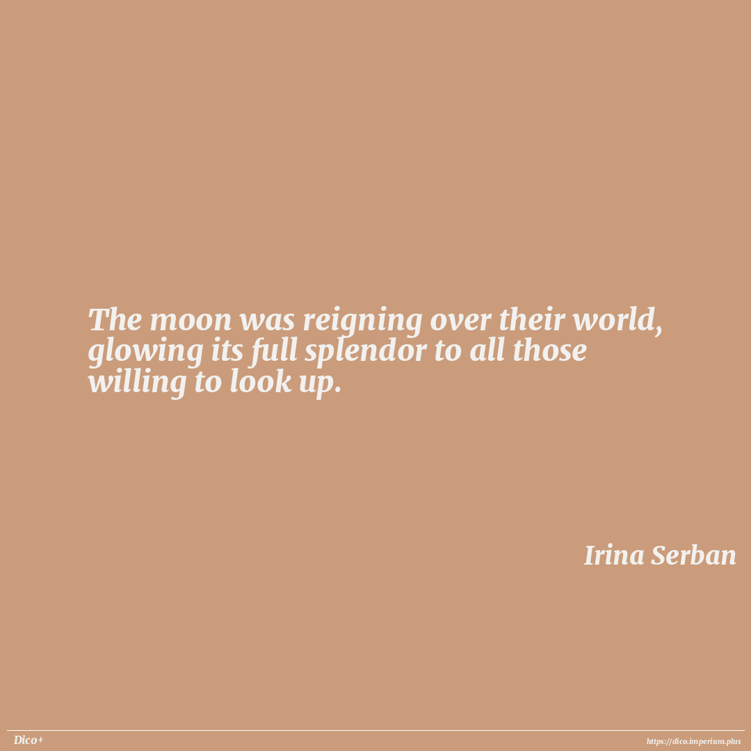 The moon was reigning over their world, glowing its full splendor to all those willing to look up.